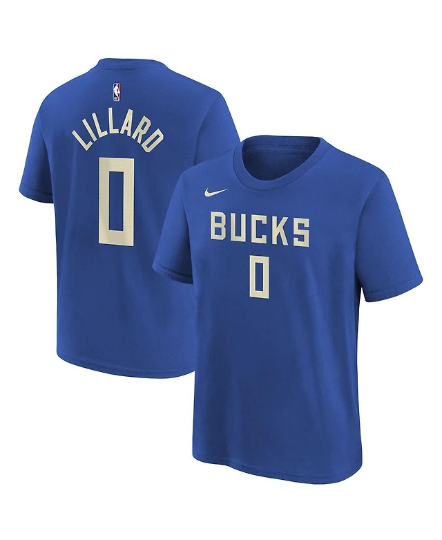 Nike Big Boys and Girls Damian Lillard Royal Milwaukee Bucks 2024/25 City Edition Name Number T-Shirt