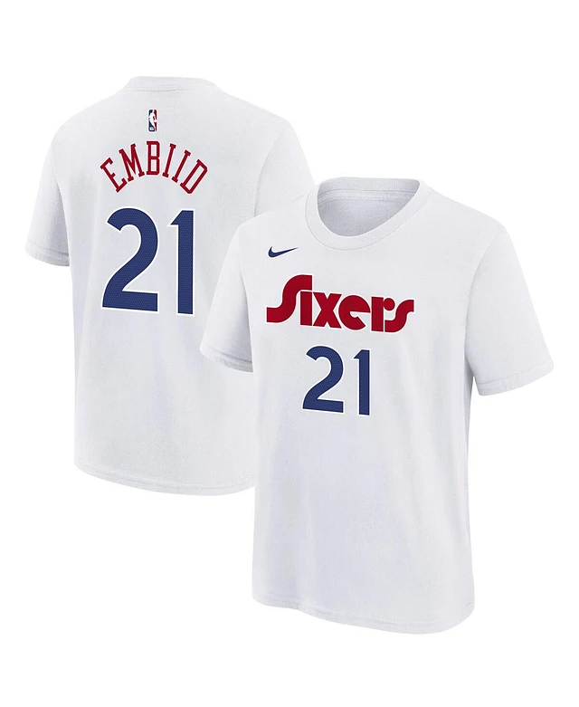 Nike Big Boys and Girls Joel Embiid White Philadelphia 76ers 2024/25 City Edition Name Number T-Shirt