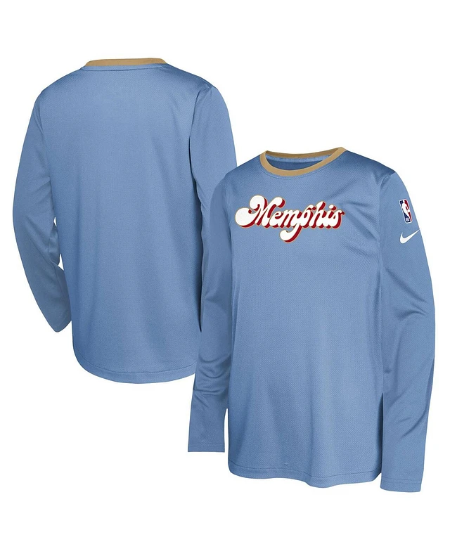 Nike Big Boys and Girls Light Blue Memphis Grizzlies 2024/25 City Edition Pregame Performance Long Sleeve Shooting T-Shirt