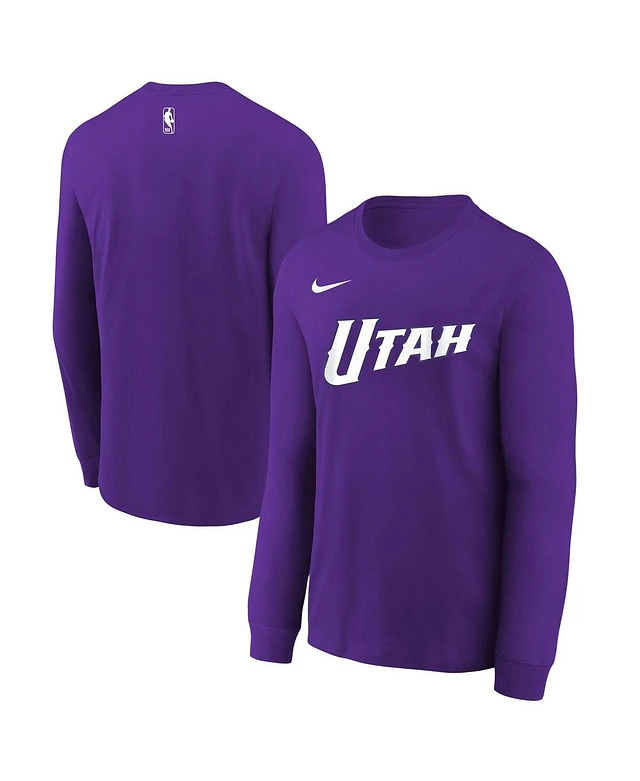 Nike Big Boys and Girls Purple Utah Jazz 2024/25 City Edition Wordmark Performance Long Sleeve T-Shirt