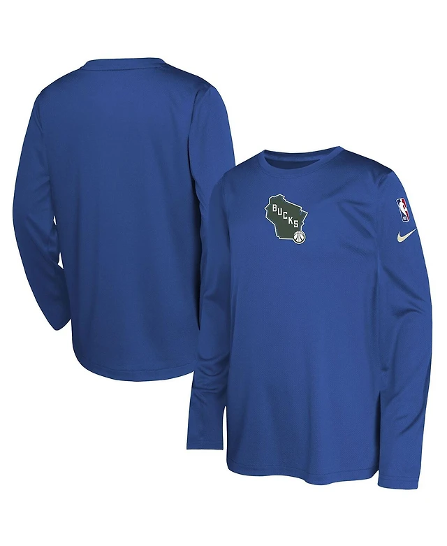 Nike Big Boys and Girls Royal Milwaukee Bucks 2024/25 City Edition Pregame Performance Long Sleeve Shooting T-Shirt