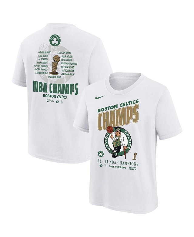 Nike Big Boys and Girls White Boston Celtics 2024 Nba Finals Champions Celebration Roster T-Shirt