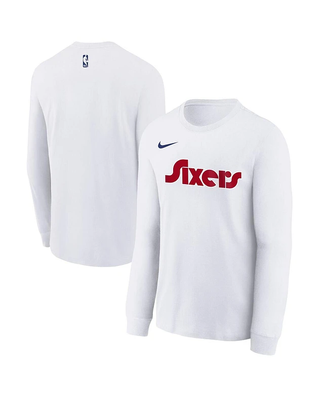 Nike Big Boys and Girls White Philadelphia 76ers 2024/25 City Edition Wordmark Performance Long Sleeve T-Shirt