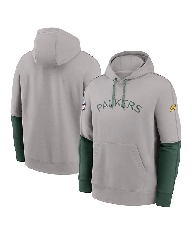 Nike Men's Gray Green Bay Packers Alternate Logo Club Tri-Blend Pullover Hoodie