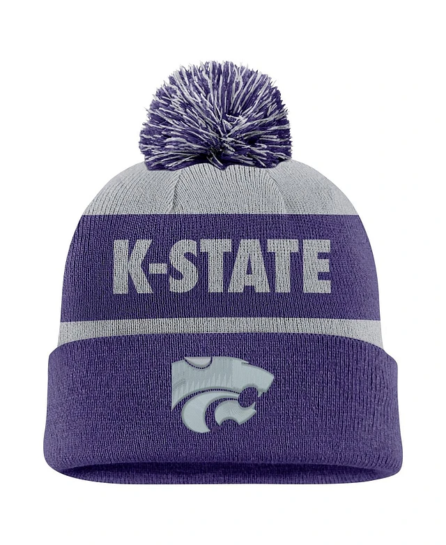 Nike Men's Gray/Purple Kansas State Wildcats Peak Stripe Cuffed Knit Hat with Pom