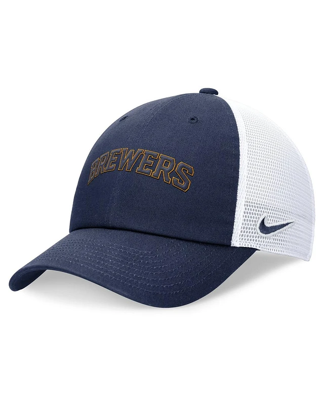 Nike Men's Navy Milwaukee Brewers Evergreen Wordmark Trucker Adjustable Hat