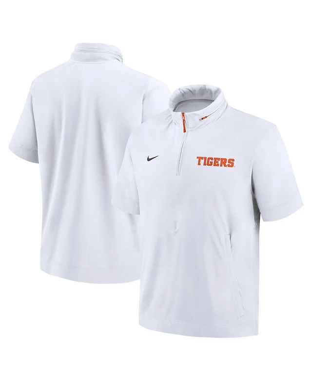 Nike Men's White Clemson Tigers 2024 Sideline Coach Short Sleeve Half-Zip Hoodie Jacket