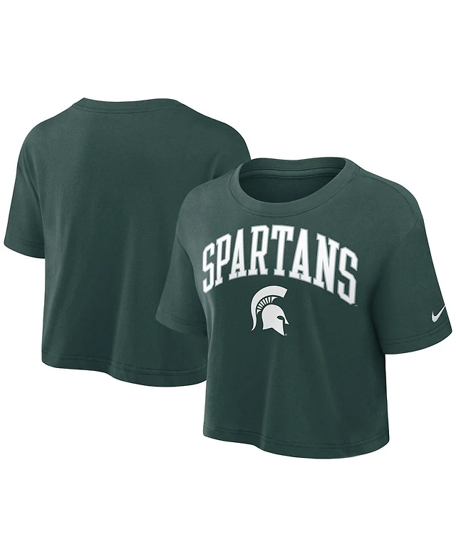 Nike Women's Green Michigan State Spartans Power Pursuit Athletic Prep Arch Performance Cropped T-Shirt