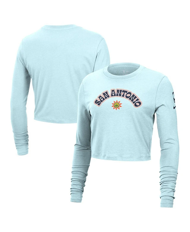 Nike Women's Light Blue San Antonio Spurs 2024/25 City Edition Essential Logo Slim Fit Long Sleeve Cropped T-Shirt