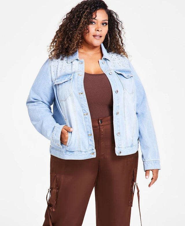 Nina Parker Trendy Plus Cotton Embellished Denim Jacket