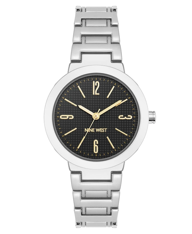 Nine West Women's Quartz Everyday Round Black and Silver-Tone Metal Alloy Watch, 33mm