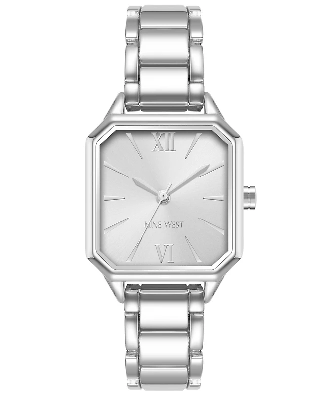 Nine West Women's Quartz Square Silver-Tone Alloy Link Bracelet Watch, 27mm