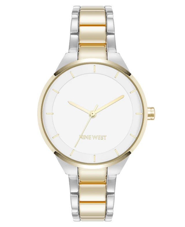 Nine West Women's Quartz White and Two-Tone Metal Alloy Watch, 34mm