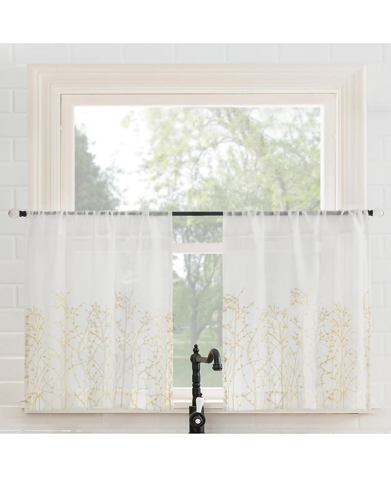Add organic serenity to your kitchen or other small windows with the delicately embroidered florals of Madeira Embroidered Floral Sheer Rod Pocket Kitchen Curtain Valances from No. 918. Sheer fabric gently filters light while enhancing privacy. Rod pocket design allows for easy hanging on a standard curtain rod up to 0.75"" in diameter. Machine washable. Ideal layering piece for added privacy and light control.