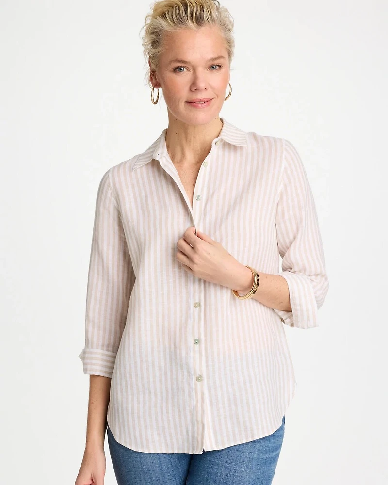 Our instantly bestselling No Iron™ shirt showcasing an ode to flawless linen, effortlessly. We can't keep our classic-fit No Iron™ linen shirts in stock. This ready to wear right out of the dryer (without the hassle of ironing) top moves with you effortlessly for all-day comfort. This top is cut for a straight silhouette with a point collar. Perfect every time in any season, whether on its own or as a base layer. Designed with a flattering shirttail hem and gusset. This button front pairs perfectly with jeans or pants.