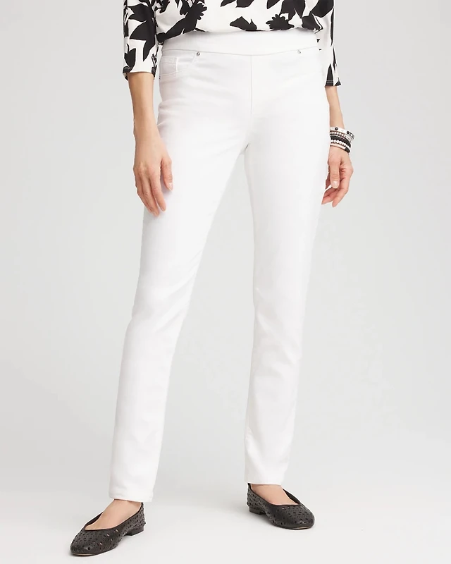 No Stain Pull-On Dolphin-Hem Capri Jeans