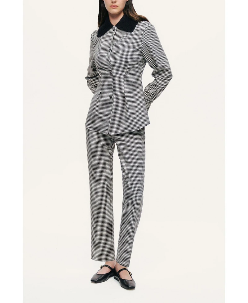 This tailored checked jacket blends classic sophistication with modern structure.