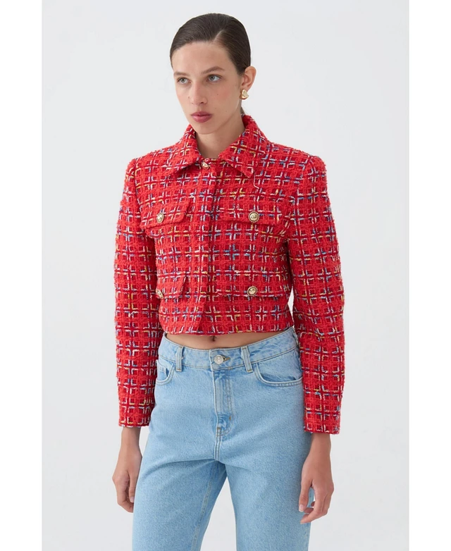 Nocturne Women's Padded Shoulder Tweed Jacket