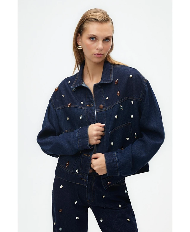 Nocturne Women's Seashell Designed Jean Jacket