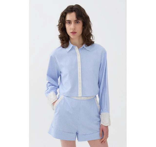 Nocturne Women's Striped Crop Shirt