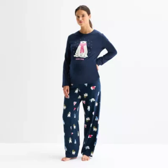 North Pole Trading Co. Polar Bear Womens Crew Neck Long Sleeve 2-pc. Matching Family Maternity Pajama Sets