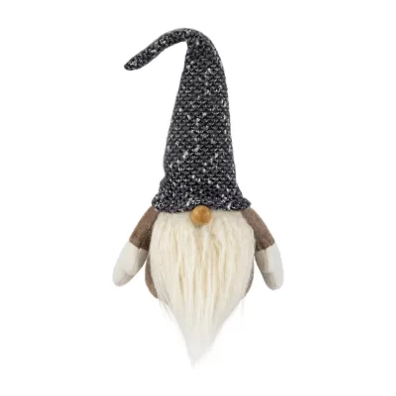 Bring some whimsy and charm to your holiday decor with This delightful gnome Christmas figure with his large bulbous nose and long white beard This friendly gnome is sure to capture the hearts of all who see him he is adorned in a pointy gray white and black gnome hat with a wired center that allows you to change its shape to suit your mood his brown suit and white gloves add a cozy touch making him the perfect addition to any festive display whether placed on a mantel shelf or table This gnome is sure to spread joy and cheer throughout your home during the holiday season features: weighted gnome figure features a large bulbous nose that gives it that distinctive gnome look its long flowing white beard adds to its traditional and whimsical look the gnome wears a brown suit white gloves and the traditional ponty gnome hat the hat has a wired center allowing it to be shaped and adjusted to suit the user's preferences comes with a weighted bottom that provides stability recommended for indoor use only dimensions: 11"h x 5"w x 4"d material(s): polyester/wood/felt