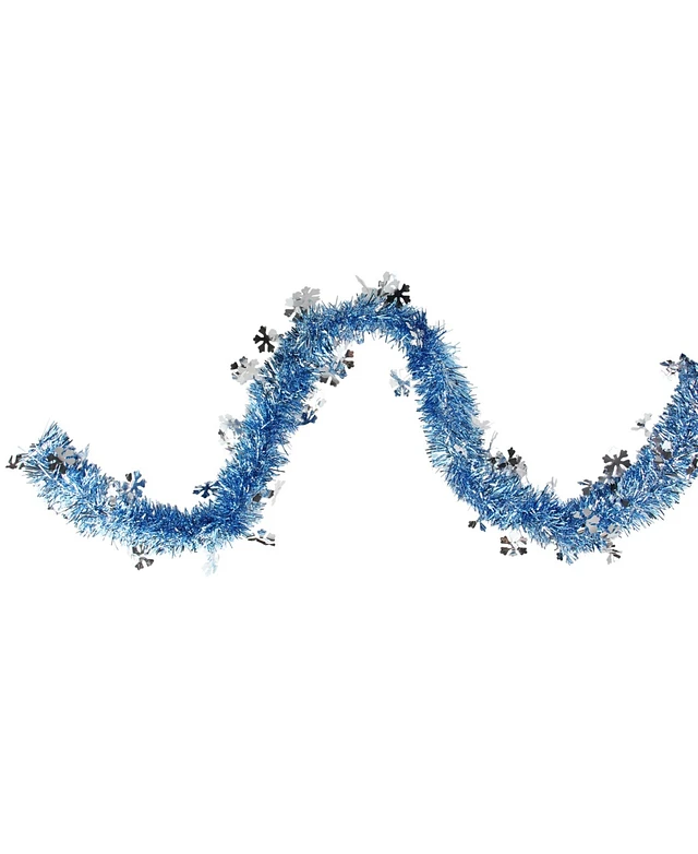 Northlight 50' Lavish Blue Christmas Tinsel Garland with Silver Snowflakes - Unlit