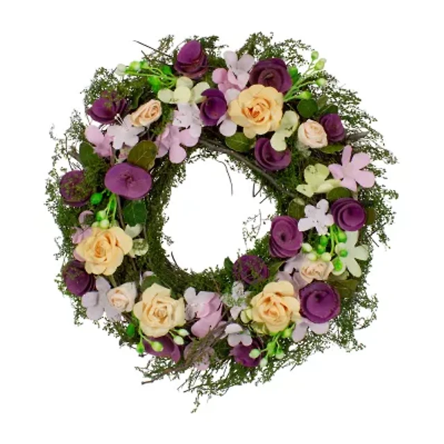 Northlight 12in Floral Moss And Twigs Spring Wreath