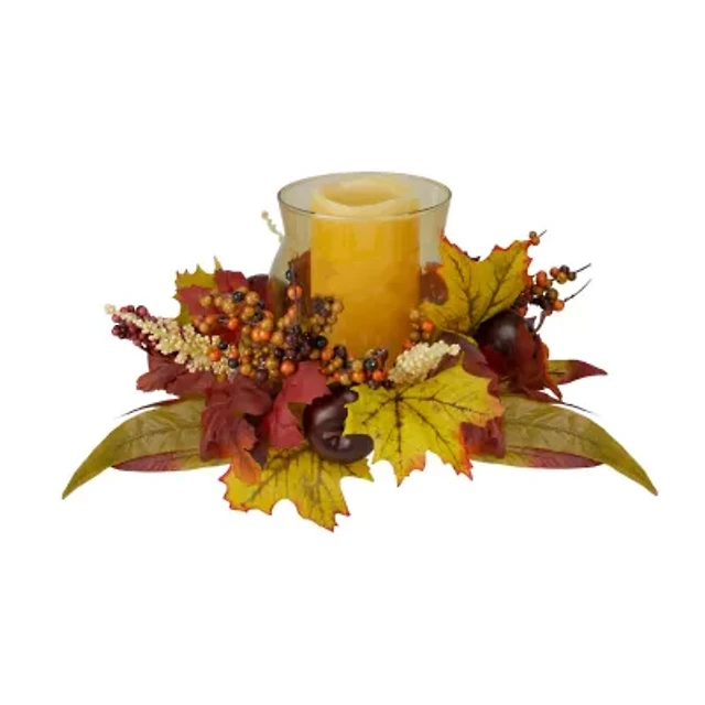Northlight 21in Orange Fall Harvest Leaves And Pumpkins Candle Holder