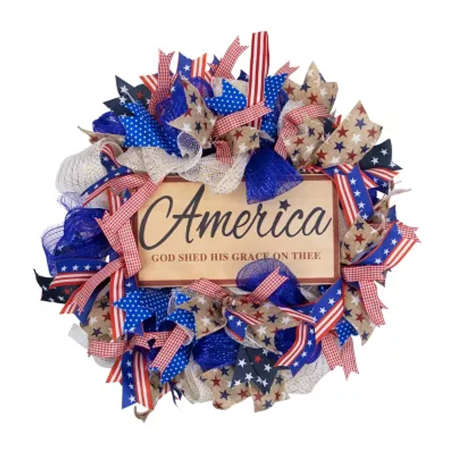 Northlight 18in Star And Stripes " America God Shed His Grace On Thee" Bow Wreath