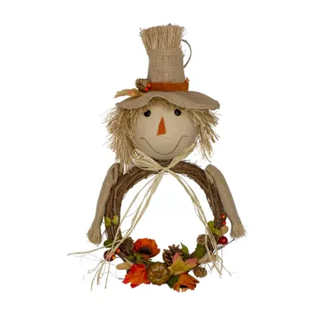 Northlight 20in Tan And Orange Fall Harvest Scarecrow Wreath