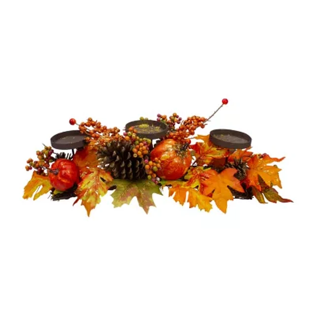 Northlight 21in Orange Fall Harvest Leaves And Pumpkins Candle Holder