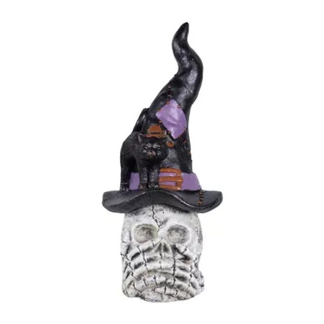 Northlight 22.75in Skull In Witch Hat With Black Cat Halloween Tabletop Decor