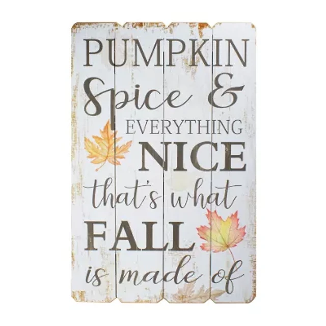 Northlight 23.5in White-Washed Pumpkin Spice Everything Nice Fall Wooden Hanging Wall Sign