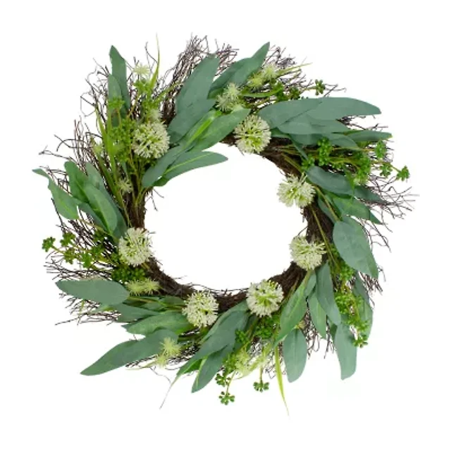 Northlight 23in Olive Leaf And Floral Twig Wreath