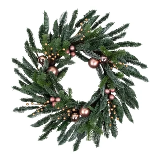 Northlight 24" Green Foliage and Assorted Copper Ornaments Wreath - Unlit