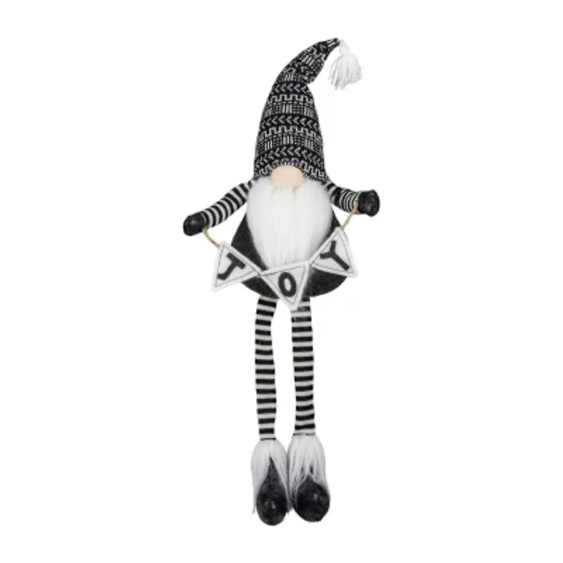 Gnomes are best known for guarding earthly treasures providing good luck and are perfect for protecting your Christmas goodies! This gnome is happily enjoying your Christmas and holiday festivities with his "joy" banner add This gnome to your home for a pop of color a ton of cuteness and luck to your holiday decor product features: sitting gnome Christmas figure gray body with a beige round nose full white fluffy beard lodge style knitted hat that is bendable with tassels at the end dangling legs that are black and white with a striped design black boots with fluffy faux white fur trim the gnome is holding on to a banner that reads "joy" weighted at the base dimensions:29.5"h x 13.5"w x 6"d material(s):polyester