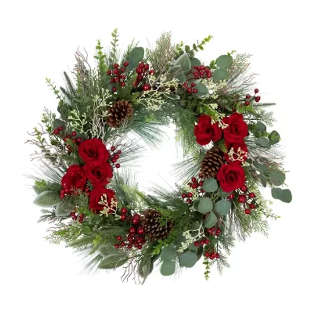 Northlight 24in Rose And Peony Fern Floral Wreath