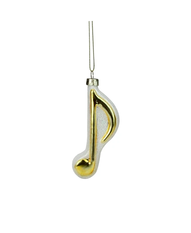 Northlight 3.5" Gold and White Sixteenth Note Music Symbol Glass Christmas Ornament