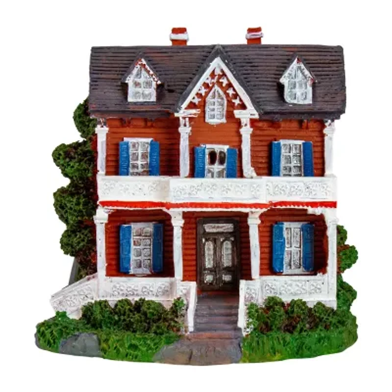This sweet little colonial house is the perfect addition to your Christmas village display illuminated with an led warm white bulb it offers the perfect soft glow exquisite detail from the landscaping to the dormers battery operated means it can be placed anywhere product features: battery operated Christmas village house pre-lit with 1 led warm white bulb requires 2 aaa batteries - not included timer function convenient on/off switch on the bottom recommended for indoor use only dimensions: 4.5"h x 4.75"w x 4.5"d material(s): polyresin