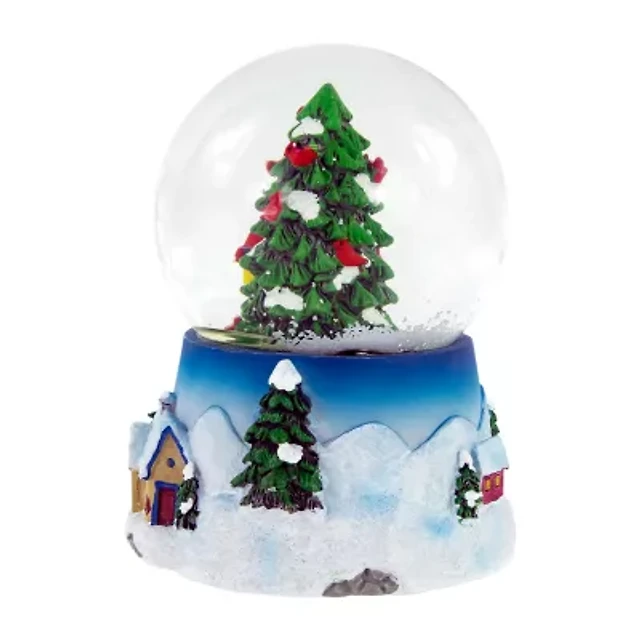 Glitzhome 100mm Lighted Resin Christmas Musical Snowflakes Christmas Tree Water Globe