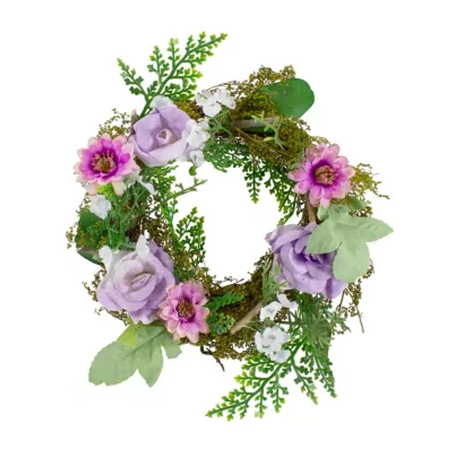 Northlight 8in Mini Rose Foliage Pink Purple Wreath