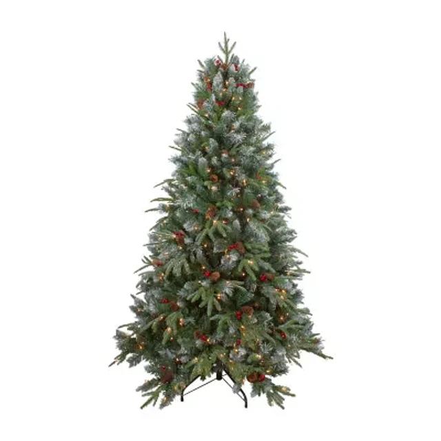 Northlight Frosted Mixed Berry Artificial Clear Lights 7 Foot Pre-Lit Pine Christmas Tree