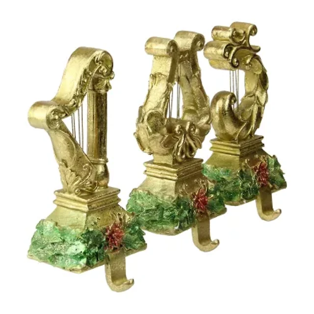Northlight Glittered Gold Harp 7in 3-pc. Christmas Stocking Holder