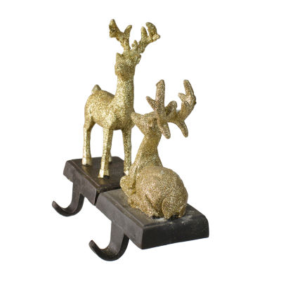 Northlight Gold Reindeer Glittered 8.5in 2-pc. Christmas Stocking Holder