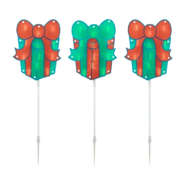 Northlight Prelit Gift Box Pathway Markers Christmas Yard Art