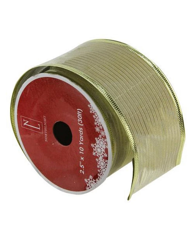 Northlight Shimmery Gold Horizontal Wired Christmas Craft Ribbon 2.5" x 10 Yards
