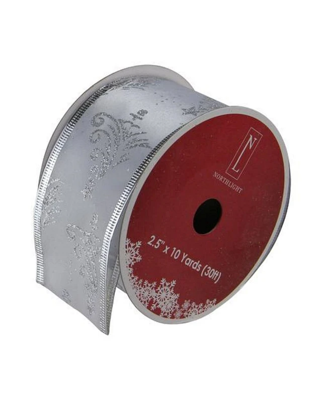 Northlight Pack of 12 Shimmering Silver Wired Christmas Craft Ribbon Spools - 2.5" x 120 Yards Total