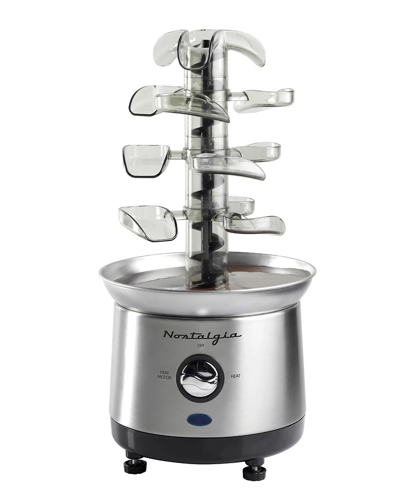 Nostalgia 2 Pound Stainless Steel Cascading Fondue Fountain Chocolate, Bbq Sauce, Ranch, Nacho Cheese, Buffalo Sauce