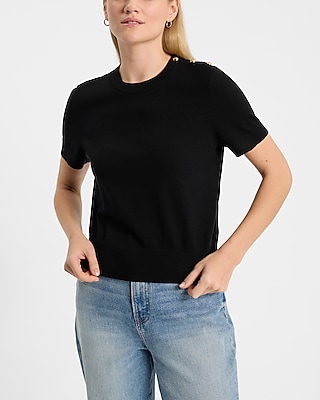 Skimming Novelty Button Shoulder Short Sleeve Sweater Tee